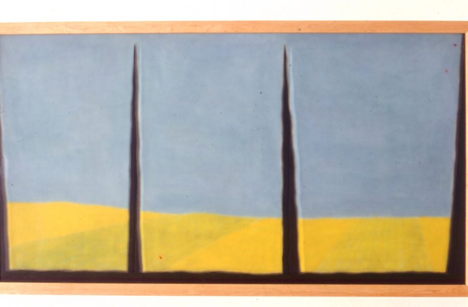 Paintings and glass all works acrylic on canvas sandblasted glass
